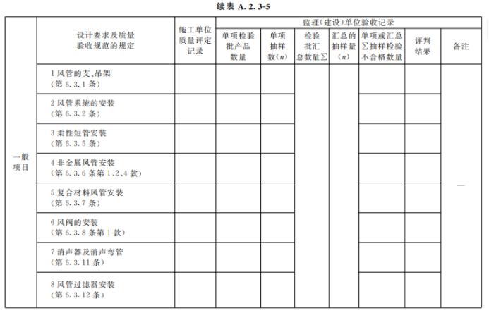 A.2.3风管系统安装检验批质量验收记录可按表A.2.3-1~A.2.3-9 的格式进行填写。
